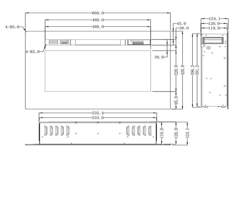 Measuring 66.0cm (W) x 42.0cm (H) x 12.4cm (D) (approx. 26.0” x 16.5” x 4.8”), this compact unit is ideal for versatile installations. It can be wall mounted using the included bracket or flush mounted into a recessed wall for a seamless, built-in look. Heat flows from the front of the unit, distributing warmth efficiently into the room.