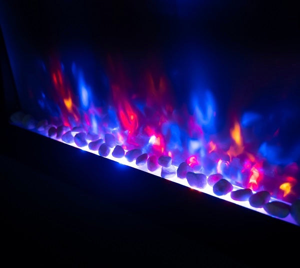 Enjoy year-round ambience with the flame-only LED setting, which gives you the visual warmth of a fire without any heat. With seven realistic flame colour options and seven side LED ambient lighting colours, you can create the perfect atmosphere at the touch of a button. The flame window measures a generous 72.5cm x 29.5cm, giving a wide, immersive view.